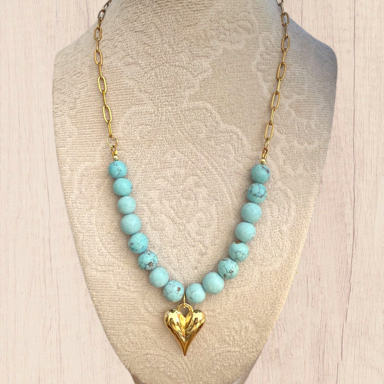 Gold plated stainless steel, natural gemstones, approximately 23”