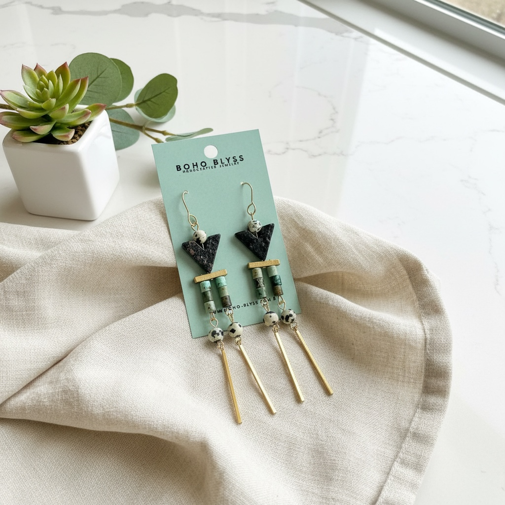 Zebra Jasper, African Turquoise, Jadeite, Brass